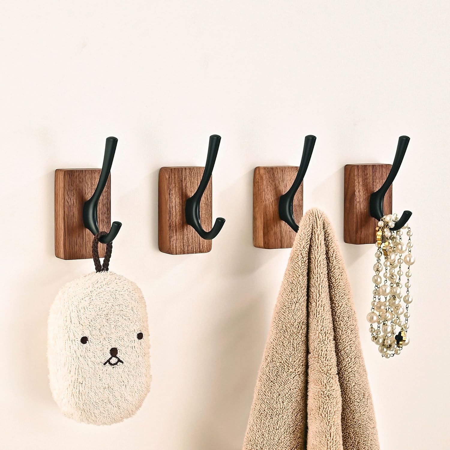 The Walnut Wood and Aluminum Hook Set is a stylish and functional tool for organizing and displaying items. Featuring a solid walnut wood base and durable aluminum hooks, this set is designed to provide a beautiful and long-lasting solution for a variety of household and commercial uses. Product Features: Solid Walnut Wood Base: Crafted from high-quality walnut wood, the base adds a touch of elegance and durability to any space. The wood finish is smooth and finished with a protective finish to resist wear and tear. Durable AluminumHooks: Made of strong aluminum material, these hooks are designed to hold items securely. The hooks are also colored through an anodizing process, which adds durability and prevents the color from fading or chipping. Easy to Install: The Walnut Wood and Aluminum Hook Set comes with easy-to-follow installation instructions, making it simple to hang in any desired location. The set includes all necessary hardware and is compatible with most standard wall surfaces. Uses and Benefits: The Walnut Wood and Aluminum Hook Set is perfect for a variety of uses, such as: Organizing and displaying towel, belts, ties, or scarves. Hanging keys, purses, or small bags. Storing kitchen tools like aprons, towels, or pot holders. Displaying art or plants. With its beautiful walnut wood base and durable aluminum hooks, the Walnut Wood and Aluminum Hook Set adds functionality and style to any space. It's a great addition to any home, office, or commercial establishment looking to create more organized and attractive surroundings.