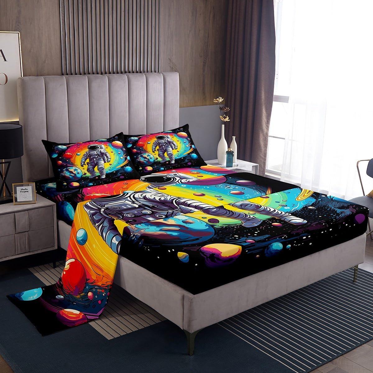 Package Include:1 x fitted sheet,1 x flat sheet,Pillowcase; Our high quality designs match any decor. High Quality Fitted Sheet Set Pattern Bedding Set, simply decorating your rooms any time you want, bringing you fresh feel for year round use. Polyester: Made from polyester microfiber, the sheet set offers strength, anatural resistance to shrinking and a noticeably soft hand feel. Size Information: Twin size 3pcs: 1 Fitted Sheet 39"W x 75"L x 16"H, 1 Flat Sheet 66"W x 96"L, 1 pillowcase 20" x 30". Full size 4pcs: 1 Fitted Sheet 54"W x 75"L x 16"H, 1 Flat Sheet 81"W x 96"L, 2 pillowcase 20" x 30". Queen size 4pcs: 1 Fitted Sheet 60"W x 80"L x 16"H, 1 Flat Sheet 90"W x 102"L, 2 pillowcase 20" x 30". King size 4pcs: 1 Fitted Sheet 78"W x 80"L x 16"H, 1 Flat Sheet 90"W x 106"L, 2 pillowcase 20" x 36". Personalize your bedroom: Beautiful design and colorful print, makes your bedroom unique and brings you a wonderful dream. Washing instructions: Machine wash separately in cold water,hang dry,do not bleach. Occasion: The soft Fitted Sheet bedding sets designed for Children ,Adult, Men, Women, Teens. This Fitted Sheet set is also suitable for full seasons, Spring, Summer, Autumn and Winter. You also can order it for your family and friends.