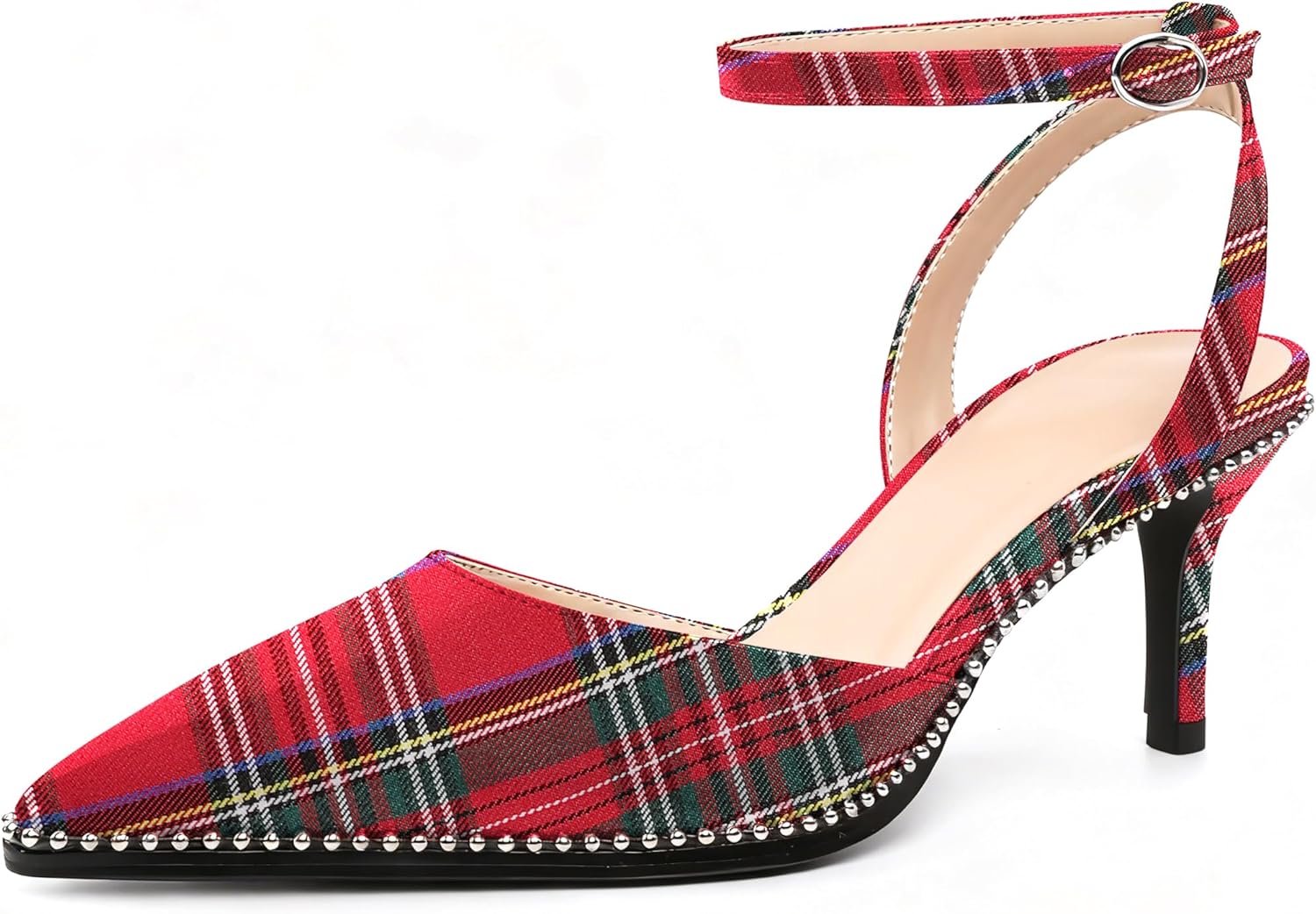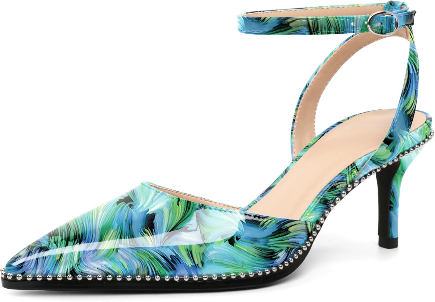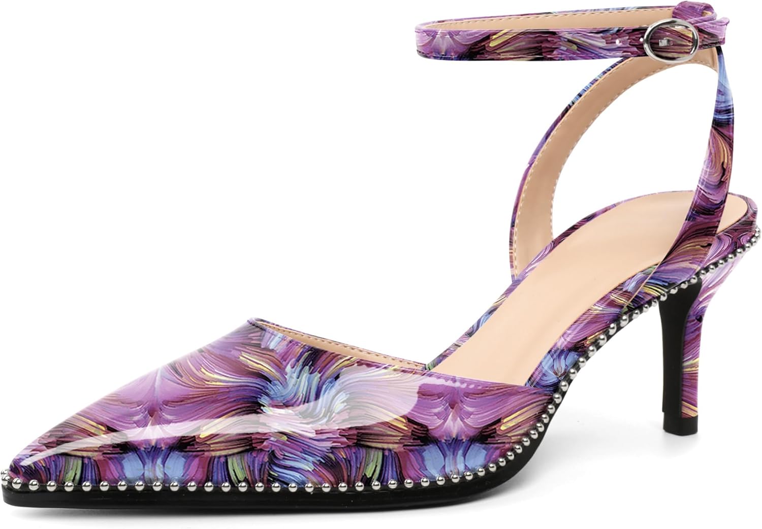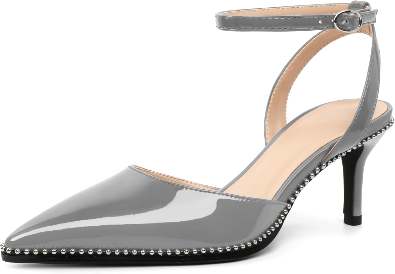 SAMMITOP Women's Kitten Heel Slingback Pointed Closed Toe Pumps Ankle Strap Dress Shoes Beaded Low Stiletto Heels Shoes for Lady Comfy Dressy 2.5 Inch Set on a kitten heel, this simple low slingback heeled sandals has built in comfort features that include a soft insole, skin-friendly lining and non-slip soles, you can wear it day to night. These ladylike dressy slingback heels will make you shine among the crowd. Update your personal ensemble with beautiful colors on this essential Pumps! Perfect for wearing with casual style dress, shorts, jeans, pants, etc.