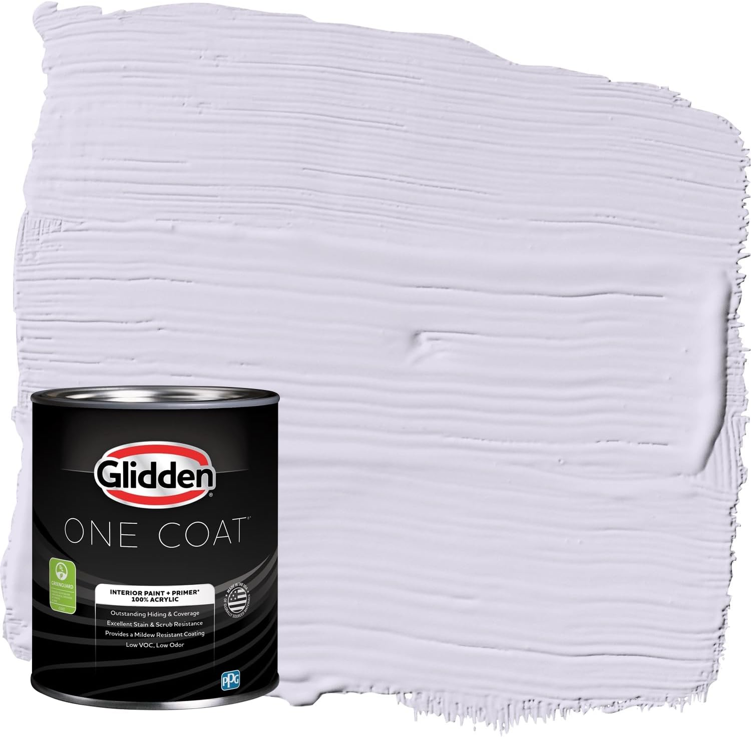 Glidden One Coat interior acrylic paint is a super-premium paint with one coat coverage* to save you time and money. It has exceptional hide and stain block which means you need fewer coats to hide your common stains and make your walls beautiful. It is a paint with so it can stand up to frequent cleanings. Featuring a hand selected palette of over 300 of our most popular paint colors, one easy coat is all you need!