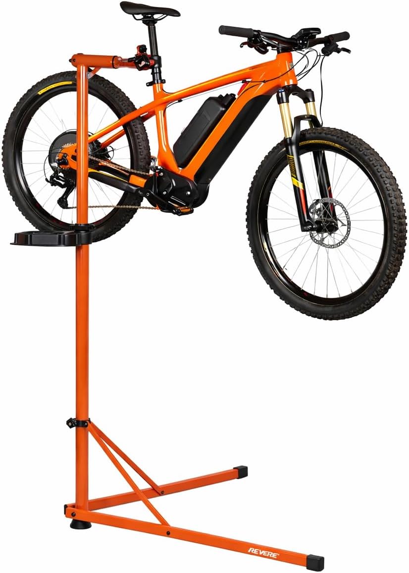 Revere E-Bike Repair Stand with Telescoping Arm, Rotating Clamp, Magnetic Tool Tray, and Adjustable Handlebar Rod - Heavy Duty, Sturdy, Adjustable (Black)