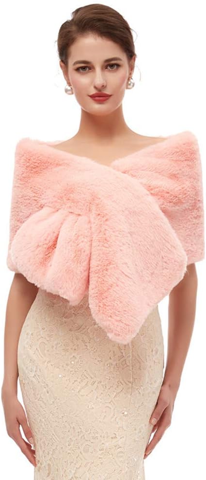 Ikerenwedding Women's Warm Faux Fur Wedding Shawl Perfect for Wedding/party/show